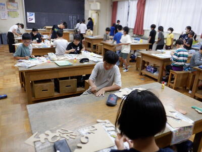 | 5年生の図工では、「進め!糸のこたん検隊」の学習に取り組んでいます。 子どもたちは、糸のこを使って木版を慎重に切り進めながら、自分のイメージを形にしていきます。細かい部分まで丁寧に切っている様子からは、それぞれの作品へのこだわりが感じられました。 切り終えた後は、紙やすりで表面を滑らかに整える作業も行い、完成に向けて一つひとつの工程を大切に進めています。 どんな作品が仕上がるのか、今からとても楽しみです。集中して取り組む姿に、ものづくりの楽しさと達成感があふれていました。 |