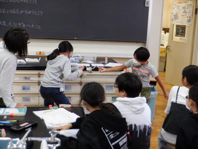 | 5年生の理科では「電気のはたらき」の学習を進めています。今日は、50回巻きのコイルと200回巻きのコイルで電流の大きさがどう変わるのかを実験しました。 実験をしてみると、200回巻きのコイルの方がより強い磁力を生み出し、クギがたくさん引っ付く結果となりました。子どもたちはその違いに大興奮!「もっとくっついた!」と歓声が上がり、理科室は大盛り上がりでした。 次はいよいよ「電流カー」の作成に入ります。子どもたちは「早く作りたい!」と楽しみにしている様子で、これからの活動も期待が高まっています。 |