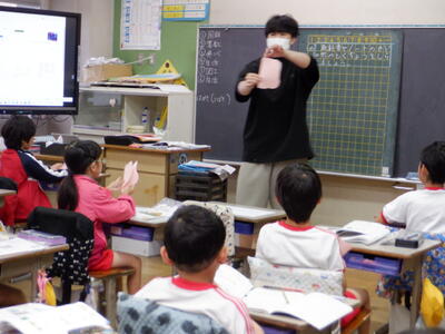 | 2年生の特別活動の授業では、「野菜を食べるとどんないいことがあるのかな?」というテーマで学習を行いました。今回は本校の栄養教諭と一緒に、野菜の栄養や体への働きについて、たくさんのことを学びました。 授業では、タマネギやピーマンなどの野菜の表面や断面の写真を黒板に掲示し、見た目の違いや特徴を観察したり、野菜に関するアンケートを通して自分の食生活を振り返ったりと、子どもたちは興味津々!楽しみながら学びを深めることができました。 学習の成果もさっそく現れ、今日の給食では「野菜を食べると元気になるんだよ!」と話しながら、いつも以上にモリモリ食べる姿が見られました。これからも、食べ物の大切さを学びながら、健康な体づくりを目指していきます! |