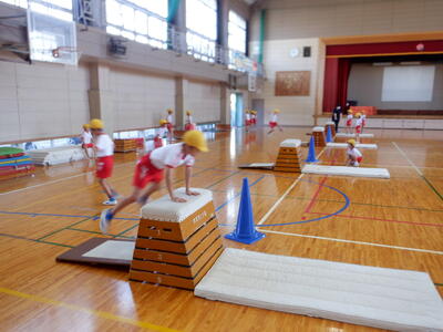 | 今日の2年生の体育では、「跳び箱」に取り組んでいました。2年生になると、なんと5段の跳び箱にも挑戦できるようになり、子どもたちは元気いっぱいに跳んでいました。 跳び終わった後には、自分より先に跳んだ友だちが「こうすると跳びやすいよ」とアドバイスをする場面もあり、互いに協力しながら取り組む姿が印象的でした。 運動を通して、体だけでなく思いやりや助け合いの心も育っていることを感じます。これからも、楽しく安全に体育の授業に取り組んでいきましょう! |