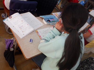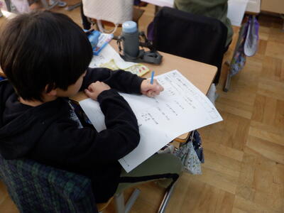 | 4年生の国語では、調べてきた伝統芸能のまとめ作業を行いました。 ノートPCを使ってまとめる子もいれば、紙に書いて整理する子もいて、それぞれ工夫しながら取り組んでいました。 少しずつ形になってきたまとめは、パンフレットとして完成に近づいています。子どもたちが調べた成果がどのように表現されるのか、出来上がりがとても楽しみです。 |