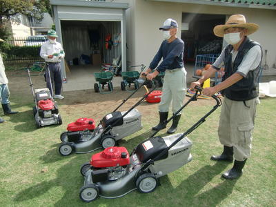 一昨年度購入した1台と合わせて、手押しタイプの芝刈り機は合計3台になりましたキラキラ