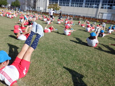 | 今日は、これまで取り組んできた「はつらつ体操」の最終日でした。来週からは持久走に向けた活動が始まる予定です。子どもたちは「かえる倒立」や「V字バランス」などの動きを練習したあと、全身を使って元気よく体操に取り組みました。 秋晴れの空の下、笑顔で体を動かす子どもたちの姿はとても輝いていて、見ているこちらまで元気をもらえました✨ これまでの体操で培った体の使い方や集中力を、今後の持久走にも活かしていってほしいですね! |
