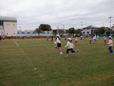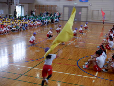 | 今日は朝から、子どもたちが楽しみにしている「縦割りタイム」がありました。赤組は室内でジャンケン列車やハンカチ落としなど、みんなで仲良く遊びながら笑顔いっぱいの時間を過ごしていました。 一方、黄組と青組は校庭に出て、かけっこやドッジボールなど元気いっぱいに体を動かしていました。ドッジボールでは、6年生のお兄さん・お姉さんがキャッチしたボールを小さい子に渡して、「投げてごらん!」と優しく声をかける姿も見られました。 異学年での関わりを通して、思いやりや協力の心が育まれていることを感じる、心温まるひとときでした✨ |