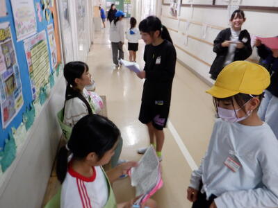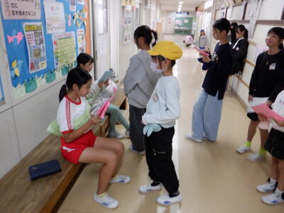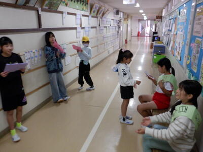 | 今日の昼休みも、職員室前の廊下では児童会の子どもたちが「百人一首検定」の審査員として大活躍!検定を受けに来た子どもたちに対して、「120%合格する覚悟で来てください!」と、元気いっぱいに気合いを注入する姿が見られました。 検定にはたくさんの子どもたちが挑戦し、廊下は熱気に包まれていました。札を覚えてきた成果を発揮しようとする真剣な表情、友だちを応援する温かい声かけなど、学校全体が百人一首でつながる素敵な時間となりました。 児童会の皆さんの運営力と、挑戦する子どもたちの意欲が光る、活気あふれる昼休みでした! |