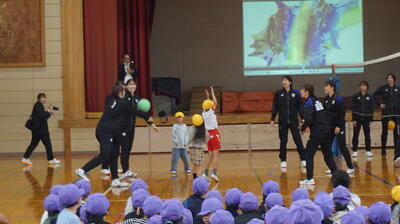 本校学区内の「直徳」さんのご厚意により、プロのバレーボールチーム「上尾メディックス」の皆さんと交流することができました。選手の皆さんは、さすがバレーボールのプロという大きさで、プロの風格を感じました。