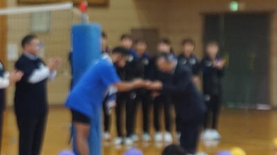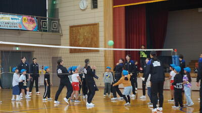 上尾メディックや選手の自己紹介と、良い機会を提供してくださった直徳の岩上様の熱いお話しを聞いた後、実際に全学年とのバレーでの交流をしてくれました。