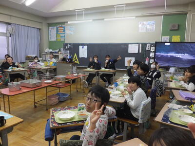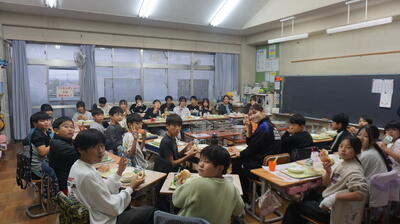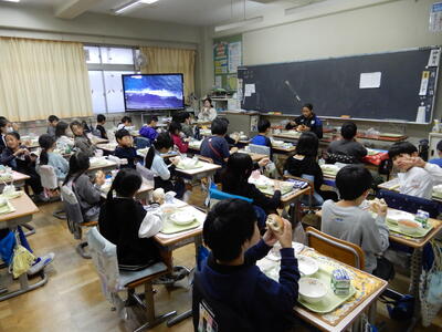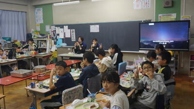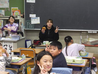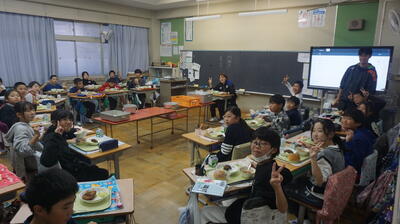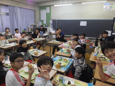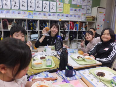 選手も子どもたちもおいしい給食ににっこにこ。