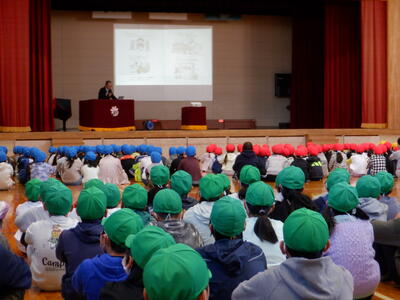 | 今朝、体育館で行われた全校朝会では、11月の生活目標についてのお話がありました。今月の目標は「本をたくさん読もう」です。 先生からは、「本を読むことで、たくさんのことを知ることができる」「想像力が広がる」「心が豊かになる」など、読書の素晴らしさについて教えていただきました。子どもたちは真剣な表情で話を聞きながら、自分もたくさん読んでみようという気持ちを高めていました。 今月は、どれだけの本と出会えるでしょうか?12月には、みんながどれくらい本を読めたかを振り返る予定です。図書室の本をたくさん借りて、読書の秋を楽しみましょう。 |