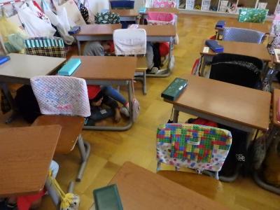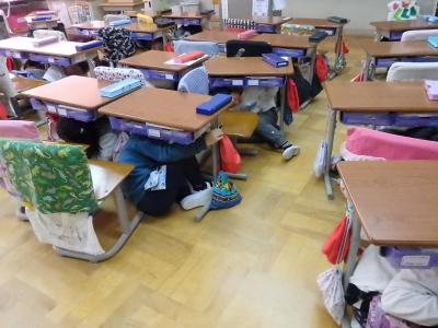 地震速報の音が流れると、速やかに机の下に入る行動がとれました。