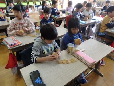 訓練後は、児童は災害備蓄用パンを試食しました。缶入りのパンですが、思いの外しっとりとしています。味はどうでしたか?