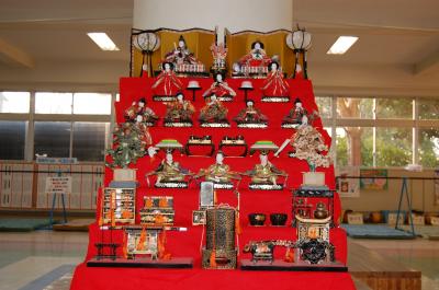 本校でも、『子供たちが健やかに育ち、幸せになって欲しい』という願いを込めて、雛人形の飾りつけを昇降口前で行いました