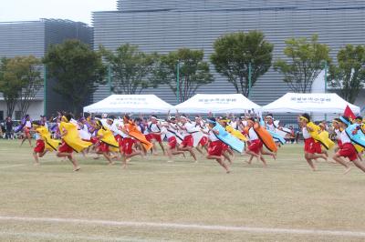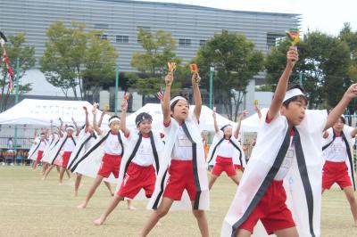3・4年生の力強いかけ声で運動会のスタートを飾りました。鳴子のそろった音、キレのある動作、子ども達の思いがたくさんつまった演技になりました。
