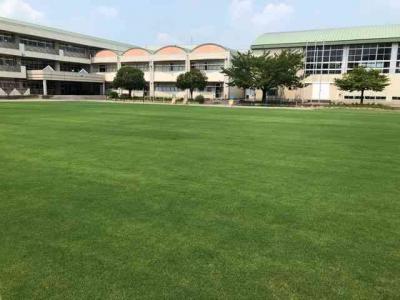 暑い中、校庭の芝生は元気に育っています。芝生ボランティアの方々が、この暑い中、毎週2回もメンテナンスを行ってくださっています。心より感謝申し上げます。今日は芝生ボランティアの方々に、県の環境部みどり自然課が取材に来ます。