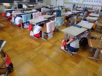児童は速報を聞き、自分達で判断し、素早く机の下にもぐるなど、身を守る行動をとることができました。