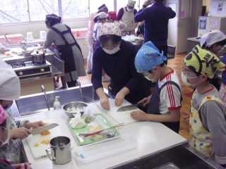 社会科「昔のくらし」の学習で、「すいとん作り」を行いました。保護者の皆様方にも御協力をいただき、安全にすいとん作りができ、伝統食に触れることができました。