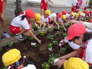 環境・花委員会の児童のスムースな司会・進行で、兄弟学級で楽しく花を植えることができました。