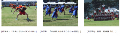 低学年の元気な掛け声が響いた力強い「中央っ子ソーラン2018」、中学年の気合の入った岡山県民謡「中央桃太郎伝説うらじゃ音頭!!」、高学年の力強く美しい表現・組体操「虹」等、どれも見事な演技でした。一人一人が輝き、20%の力を出し切った、素晴らしい運動会でした。