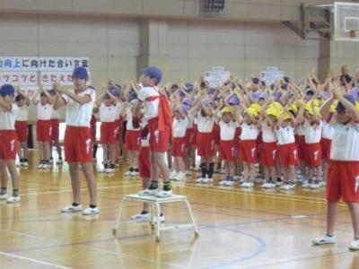 11日の球技大会に向け、6年生を励ますため、全校挙げて応援のメッセージを送りました。励ます会を中心となって取り組んだ5年生の応援団は、気合の入った声、堂々とし態度で全校児童を見事にリードしてくれました。