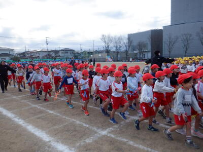 | 校庭では、「ヘビじゃんけん」や「追いかけっこ」で元気いっぱいに走り回る姿が見られ、寒さを忘れるほどのにぎやかさでした。 | ||