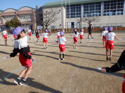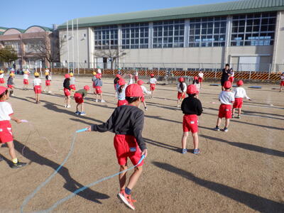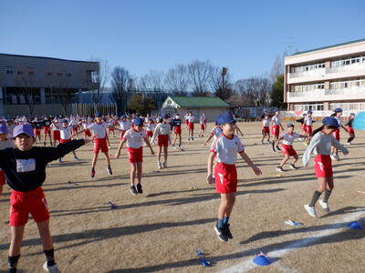 | 今朝の「熱中タイム」では、先週に続いて短縄跳びに取り組みました。冬の冷たい空気の中、トレーナーを着込んで校庭へ向かう子どもたちの姿は、どこか頼もしさを感じさせます。いざ縄跳びが始まると、凍えていた体が少しずつ温まり、頬が赤らみ、笑顔が増えていきました。寒さに負けず、一生懸命に跳ぶ姿はとても輝いていました。 活動の締めくくりには、昇降口に向かって行進をしました。特に1年生の子どもたちは、腕をしっかりと振り上げ、姿勢よく歩く姿がとても立派で、見守るこちらまで誇らしい気持ちになりました。小さな体で一生懸命に取り組む姿に、朝の冷たい空気がふっと和らぐようでした。 |