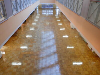 | 今年度の4月から安全に進めていただいております大規模改修工事が、少しずつ完成に近づいています。 その中でも、一階の廊下は見違えるほど美しく生まれ変わりました。以前は床が傷んでいましたが、丁寧な修復工事によって、今ではまるで鏡のように光を反射するほどピカピカの廊下になりました。 朝、子どもたちがこの廊下を歩く姿を見ると、自然と背筋が伸び、気持ちよく一日をスタートできているように感じます。「わあ、きれい!」と目を輝かせる子も多く、環境の変化が子どもたちの心にも良い影響を与えていることが伝わってきます。 こんなにもきれいな廊下で毎日を過ごせることは、子どもたちにとって大きな喜びです。これからも、子どもたちが安心して学び、のびのびと成長できる学校づくりを進めてまいります。 |