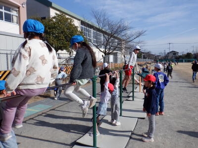 | 今日の昼休みは、外に出ても寒さを感じない、過ごしやすいお天気でした。 そのおかげで、校庭にはたくさんの子どもたちが集まり、思いきり体を動かして遊ぶ姿が見られました。 鉄棒に挑戦する子、縄跳びのリズムを楽しむ子、追いかけっこで笑い声を響かせる子、ドッジボールで友だちと力を合わせる子…。 どの子も、友だちと一緒に遊ぶ時間を心から楽しんでいる様子で、校庭は明るい笑顔でいっぱいでした。 遊びの中で自然と生まれる「がんばれ」「もう一回やってみよう」という声かけや、手を差し伸べる姿に、子どもたちの優しさと成長が感じられます。 昼休みのひとときが、子どもたちにとって心も体も伸びやかになる時間になりました。 |