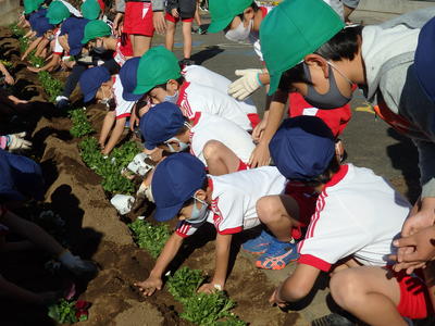 大根もすくすく育っています。 混んできたので「間引き」しました。「間引き」した大根も 小さいけれどおいしそうなので、おいしくいただきます! |