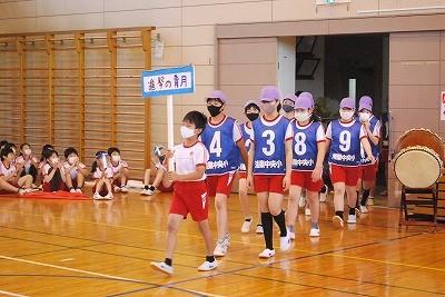 5年生を中心とした企画・運営で、明日行われる「6年生市内球技大会」の壮行会(球技大会選手を励ます会)を行いました。