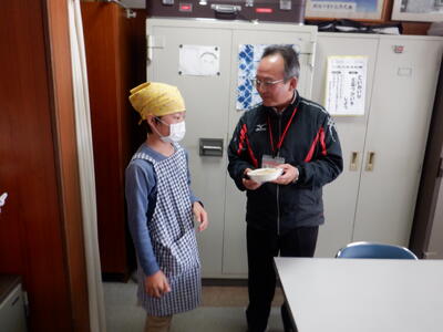 | 5年生の家庭科では、「米粒麦」をテーマに学習をしました。お米や麦を使って、どのような料理やお菓子ができるのかをグループごとに話し合い、工夫を凝らしながら楽しく調理をしました。 出来上がった料理を職員室に届けてくれた子どもたちは、充実感に満ちた表情をしていました。その笑顔からは「やり遂げた!」という達成感が伝わってきます。先生方も心を込めて作られた料理を美味しくいただき、子どもたちの頑張りをしっかりと受け止めていました。 仲間と協力しながら調理を進め、完成した料理を自信をもって届ける姿は、子どもたちの成長を感じさせてくれる瞬間でした。学びの中で得た喜びや達成感は、これからの生活にもつながっていくことでしょう。 |