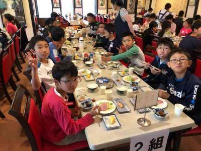 朝ごはんです。子供たち、しっかり食べてます。