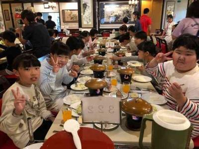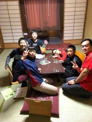 2日目の夜ご飯です。今日のお昼は軽くオニギリ弁当だったので、きっとみんなお腹ペコペコだと思います。今日のホタル見学は天候不順で中止しました。残念!その代わりに大広間でレク「班対抗!出し物大会」を行います。各班の協同が問われるレクです。
