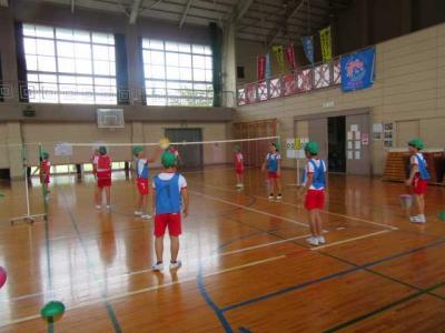 9月は運動会練習とは別にキャッチバレーを行っています。ネット型の競技は昨年度プレルボールでも経験しましたが、キャッチ、トス、アタックの三段階攻撃が本当に爽快で、子ども達も一生懸命に取り組みました!仲間と協力することを楽しみながら活動しています!