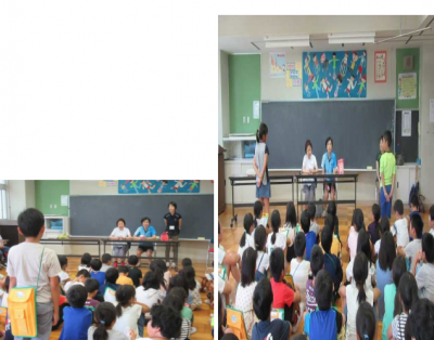 今年度より「英語活動」が始まりました。中村先生、ローレンス先生と一緒に青空の下で元気に英語活動を行っています。歌や、ダンス、ゲームやペア活動を通して英語の楽しさを学びました。