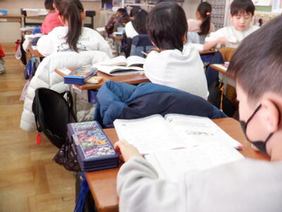 | 1年生の教室では、子どもたちが一生懸命「百人一首」の暗唱に取り組んでいました。 「先生、昨日はここまで合格したよ」と、嬉しそうにカードを見せてくれる子の表情は、まるで小さな宝物を見つけたかのように輝いています。合格の印が増えるたびに自信が育ち、その喜びが全身からあふれ出していました。 友だちと読み合いながら覚える姿もあり、互いに励まし合う声が教室にやさしく響いていました。 クラスみんなで同じ目標に向かって頑張るその姿は、とても微笑ましく、見守る大人の心まで温かく包んでくれます。 子どもたちの「やってみたい」という気持ちと、「できた」という喜びが重なり合う、そんな素敵な時間が流れていました。 |