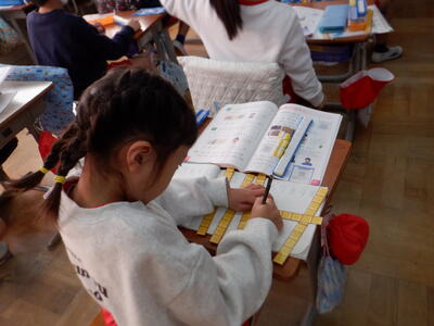 | 1年生の国語では、「くわしく きこう」の学習を行いました。 今日は、子どもたちが自分で選んだ“友だちに紹介したい本”を、班の中で発表しました。 小さな体で一生懸命に本を抱え、言葉を選びながら紹介する姿は、とても頼もしく感じられました。 発表を聞いていた友だちからは、 「もっと知りたい」 「その本、読んでみたい」 と、素直な気持ちがあふれる質問が次々と出てきました。 本の魅力を伝えようとすることで、子どもたちの語彙が増え、表現する力も少しずつ育っていきます。 また、友だちの話をよく聞き、自分の言葉で返す経験は、1年生にとって大切な学びのひとつです。 教室には、子どもたちの「知りたい」「伝えたい」がやさしく広がり、あたたかな時間が流れていました。 |