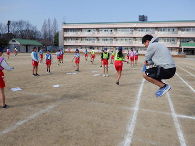| 仲間と笑い合いながら、心も体ものびのびと 6年生の体育では、「短縄跳び」に取り組みました。 今日は2人組や3人組になって、いろいろな跳び方の種目に挑戦しました。友だちが跳ぶ姿を数えながら応援したり、「もう少しで新記録だよ」と声をかけ合ったり、教室には優しいやりとりがたくさん見られました。 自己新記録が出て、思わず笑顔がはじける子もいて、その瞬間には周りの友だちから自然と拍手が起こりました。 また、先生も一緒に縄跳びを跳んでくれたことで、子どもたちはさらに楽しそうで、体育館には明るい笑い声が響いていました。 仲間と励まし合いながら体を動かす時間は、6年生にとって心をほぐし、前向きな気持ちを育ててくれる大切なひとときです。 卒業を控えた子どもたちの、のびのびとした姿がとても頼もしく感じられました。 |