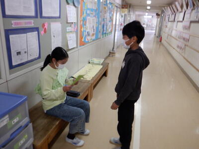 | 2時休みの時間、職員室前の廊下には、百人一首の暗唱検定に挑戦する子どもたちと、検定員として待っている子どもたちの姿がありました。 友だちの頑張りを真剣に聞き、合格を願いながら見守るその姿は、とても温かく、頼もしさを感じさせてくれます。 中には「合格できるかな…」と不安そうにやってきた子もいましたが、勇気を出して暗唱を始め、見事に合格。 その瞬間、「やったー!」と満面の笑顔で教室へ戻っていく姿がとても印象的でした。 友だちの前で挑戦し、認めてもらえる経験は、子どもたちの自信につながっていきます。 子ども同士で励まし合いながら取り組む姿に、学びの場のあたたかさを改めて感じたひとときでした。 これからも、たくさんの子が暗唱検定に挑戦し、達成の喜びを味わってほしいですね。 |