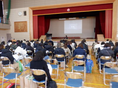 | 本日は、令和8年度に入学するお子様の保護者の皆様にご来校いただき、「入学説明会」を行いました。 説明会では、「入学の心得」や「登下校について」、そして「入学前に準備していただくもの」など、4月からの学校生活に向けた大切なお話をお伝えしました。 保護者の皆様は、これから始まるお子様の新しい毎日を思い浮かべながら、ひとつひとつの説明に熱心に耳を傾けてくださいました。 その姿から、お子様の成長を温かく見守る気持ちが伝わり、私たち職員も胸がじんわりと温かくなりました。 4月には、可愛らしい新1年生が元気いっぱいに登校してくることを、職員一同、心から楽しみにしています。 新しい学校生活が、お子様にとって笑顔あふれる毎日となるよう、しっかりと準備を進めてまいります。 |