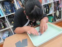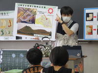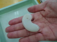 今日は、埼玉県立歴史と民俗の博物館から、木村先生と松木先生をお招きして、勾玉について教えていただきました。また、勾玉づくり体験を行いました。子供たちはとても意欲的に勾玉を作りました。「もっと、丸くさせたい」「こんな風に昔の人も作っていたのかな」「豪族になった気分だね」など嬉しそうに自分の作った勾玉を首飾りにしていました。