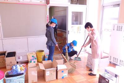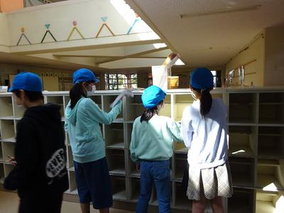 教室の掃除や机の移動、入学式の会場準備、新1年生のための教科書準備や教室の飾りつけを6年生が頑張りました。