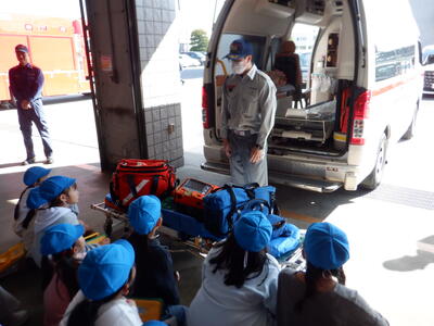 | 🚒埼玉県広域消防本部でプロの仕事に感動! 次に向かったのは埼玉県広域消防本部。消防士さんや救急救命士さんが、消防車や救急車のしくみ、消防本部の役割について丁寧に説明してくださいました。 緊急出動時の着替えの速さには、子どもたちもびっくり!「何秒で着替えられるかな?」と数えてみると、なんと30秒で完了!そのスピードとかっこよさに、みんなの目が釘付けでした。 |