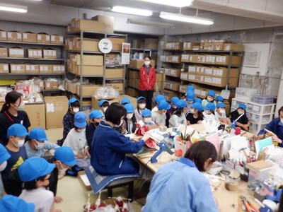 | 🎎マル武人形で伝統の技に触れる 午後はマル武人形を見学。人形の歴史や作り方について学びました。一体の人形に使われる部品はなんと70〜200個!一日に30体ほど作るそうで、職人さんの技術と努力に子どもたちは驚いていました。 質問タイムでは、たくさんの手が挙がり、興味津々な様子が伝わってきました。 |
