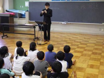講師の方に来ていただいて、リコーダーの基本であるタンギングや指の使い方をご指導いただきました。後半は、様々な種類のリコーダーで素敵な曲を演奏していただきました。