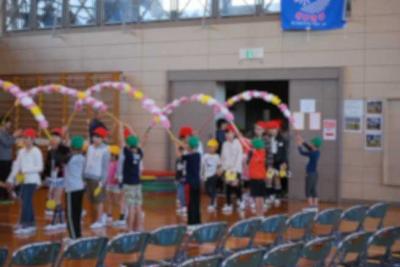6年生と手をつないで、花のアーチをくぐって入場しました。