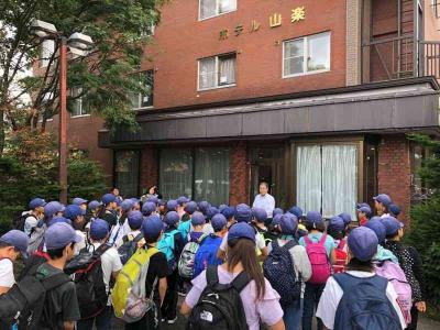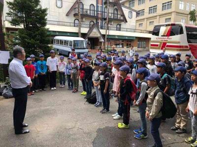 ホテル前での閉校式です。子供たちの顔がちょっぴり寂しそうです。けれどもあと1日あるので思いっきり楽しんでもらいたいと思います。