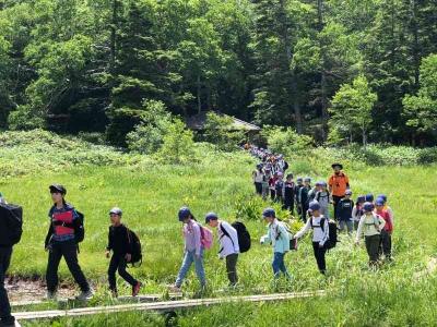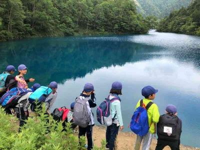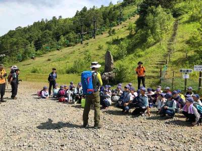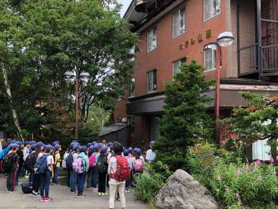 志賀高原朝の気温は20度ちょっと、とても空気が爽やかです。ホテルから5分ぐらい歩いた所で、朝の会を行いました。猿がたくさんいました。ちょっとドキドキしながらの朝の会でした。
