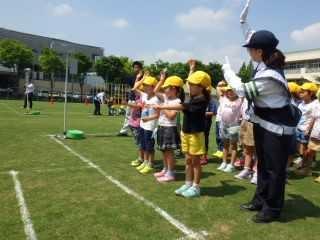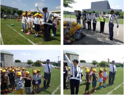 5月18日に、交通安全教室が開かれました。1年生は道路の渡り方、交通ルールを学びました。