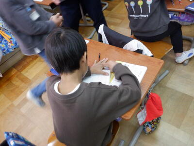 1年生の国語では、「てがみでしらせよう」の学習を行いました。 「幼稚園・保育園で一緒だった友だちに書こうかな。」 子どもたちは、誰に手紙を書こうかを楽しそうに悩みながら考えていました。 |