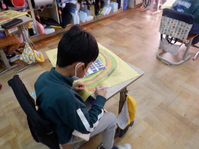 | 5年生の書写では、額縁づくりに引き続き取り組みました。 子どもたちは、一つひとつの工程をとても丁寧に進めながら、自分らしさを大切にして作業を進めています。 色の選び方や模様の工夫など、どの作品にもその子らしい個性が光り、見ているだけで心が温かくなるような仕上がりになってきました。 書写の時間に書いた文字に合う額縁を作っているため、完成したときには文字と額縁がひとつの作品としてより一層輝きそうです。 「もっときれいにしたい」「ここを工夫したい」と、作品に向き合う子どもたちの姿からは、成長と真剣さがしっかりと伝わってきます。 どんな素敵な作品がそろうのか、完成の日が今からとても楽しみです。 |